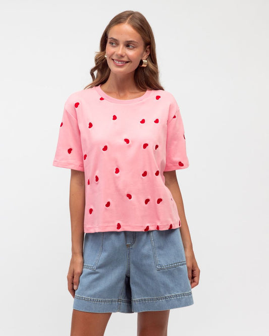 Sold outLOL70939PINK HEART EMBROIDERED TEE