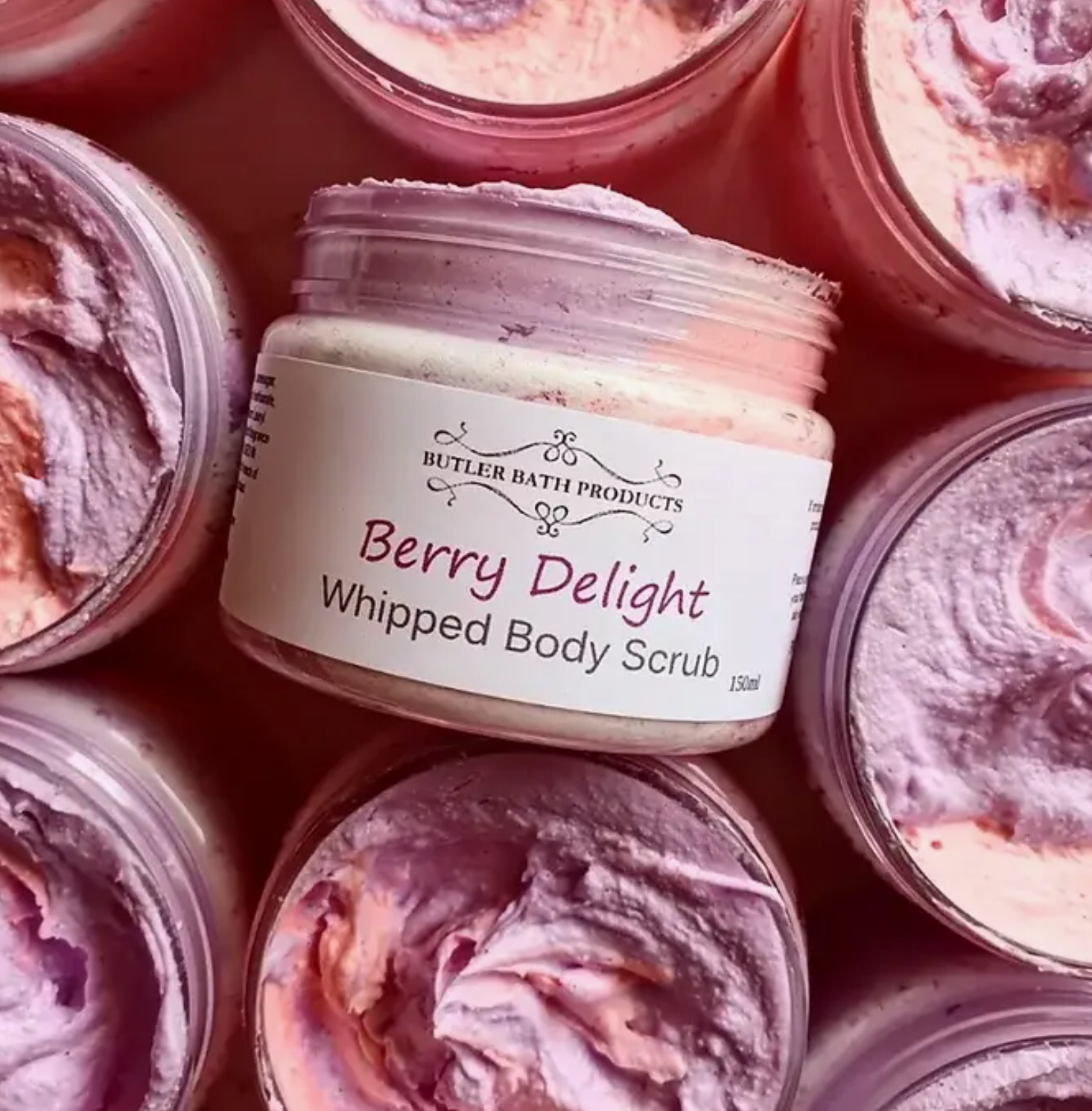 They work up a rich, creamy lather, and leaves skin clean and polished. The Scent: Fresh, zingy and packed full of fruit notes. Imagine super red, ripe berries and their beautiful aroma. 150ml per jar We recommend using with a exfoliating glove or bath pouf for the ultimate lather experience.