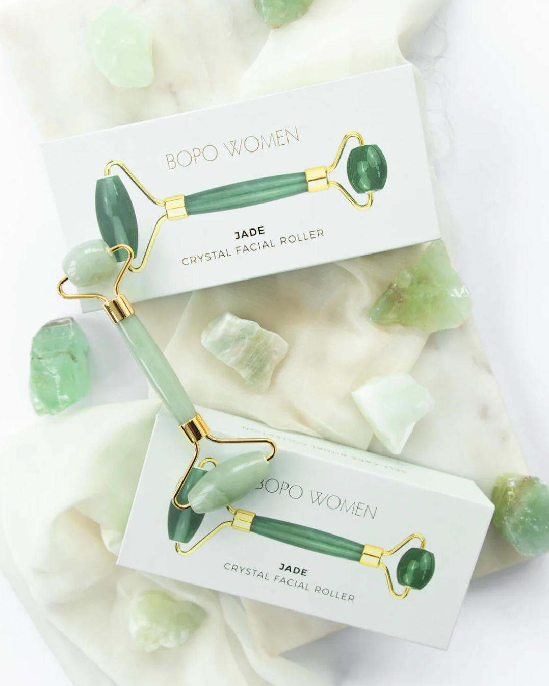 Our Jade Facial Roller has been carefully crafted from the ultimate stone of harmony & abundance and is the perfect facial massage tool to use on its own or paired with one of our facial oils. Using a jade roller as part of your daily face and self-care ritual improves blood circulation and healing, leaving your skin feeling revitalised and energised. Note: Due to the natural formations in the jade stones, each roller will be unique. Therefore colour may vary slightly from the picture above. Bopo Women moisturisers or facial oils are not included