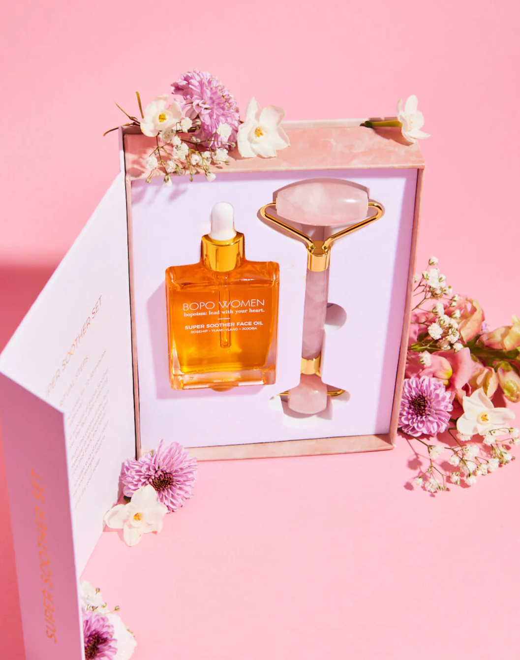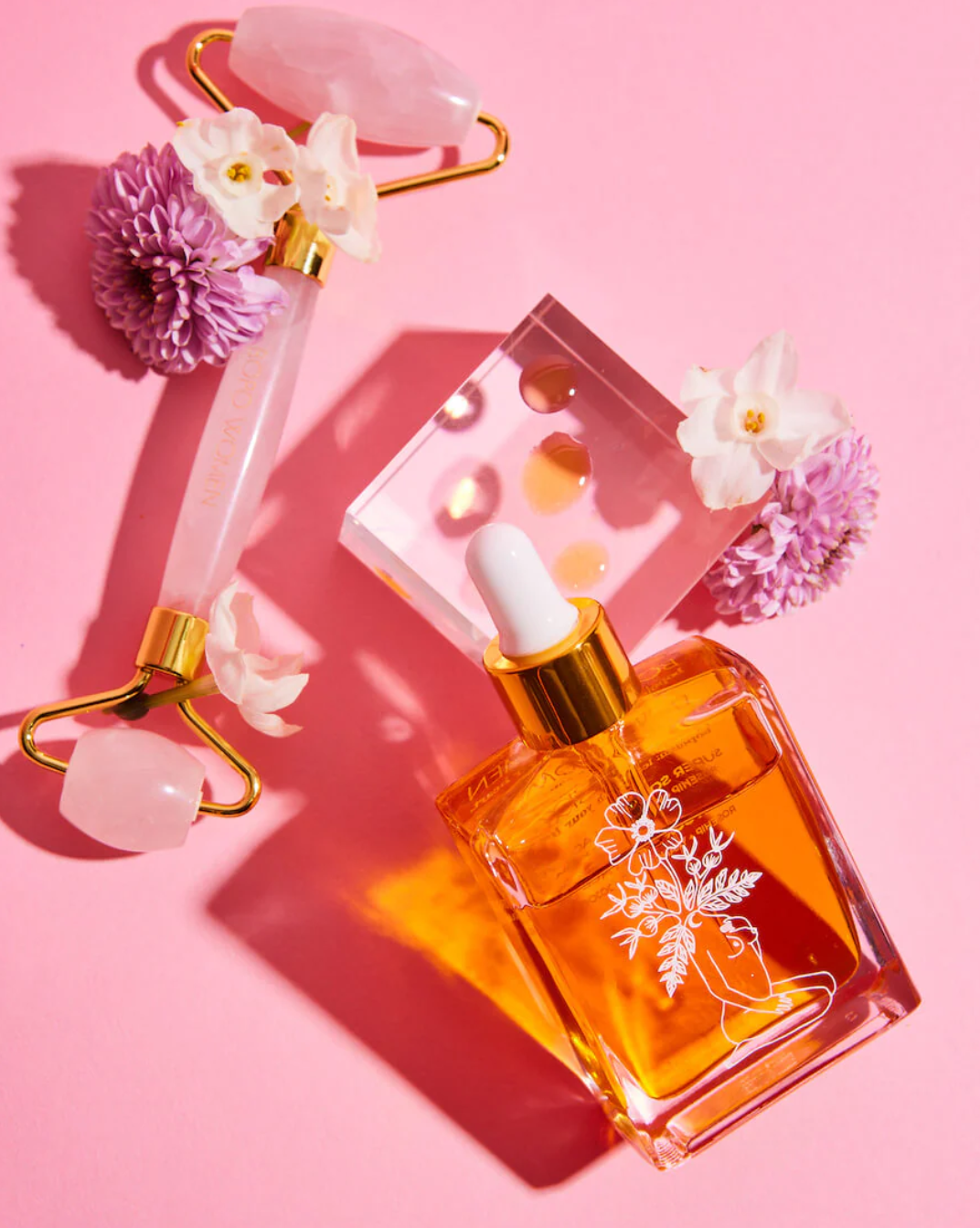 This ultimate hydration duo gift set pairs our Super Soother Face Oil and Rose Quartz Facial Roller. Super Soother is a completely natural face oil created to rehydrate and restore, tired, dry and dehydrated skin in need of some loving. Its beautiful orange glow is derived from rosehip, an oil rich in essential fatty acids that hydrates skin while promoting skin cell regeneration. Sweet almond oil and jojoba deeply quench, while Lavender detoxifies and Ylang Ylang balances. This is the right option for you if you have dry or combination skin. Absorbs really quickly and amazing under make-up! Use with your roller to maximise skin hydration, ease inflammation and increase circulation.