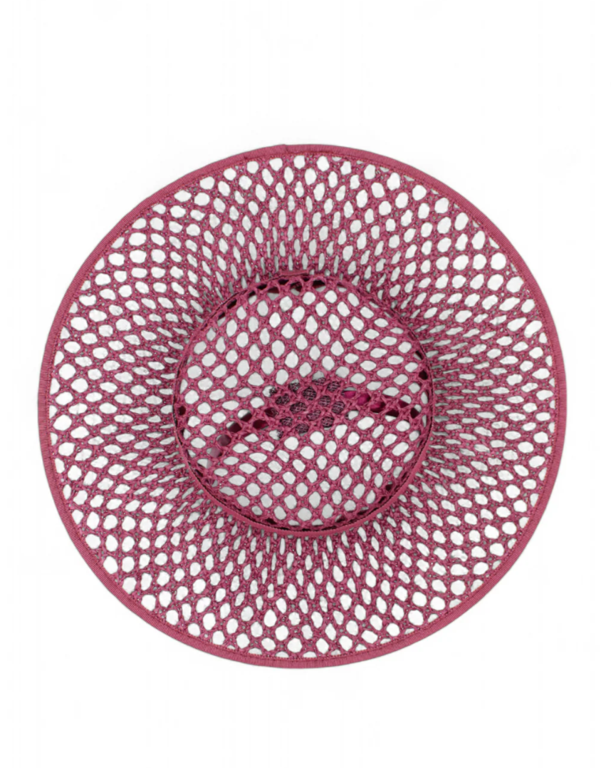 The Morgan & Taylor Cassy Racewear Boater in Dark Cherry Red is a classic plate hat featuring an elegant lattice brim and a chic ribbon across the crown.