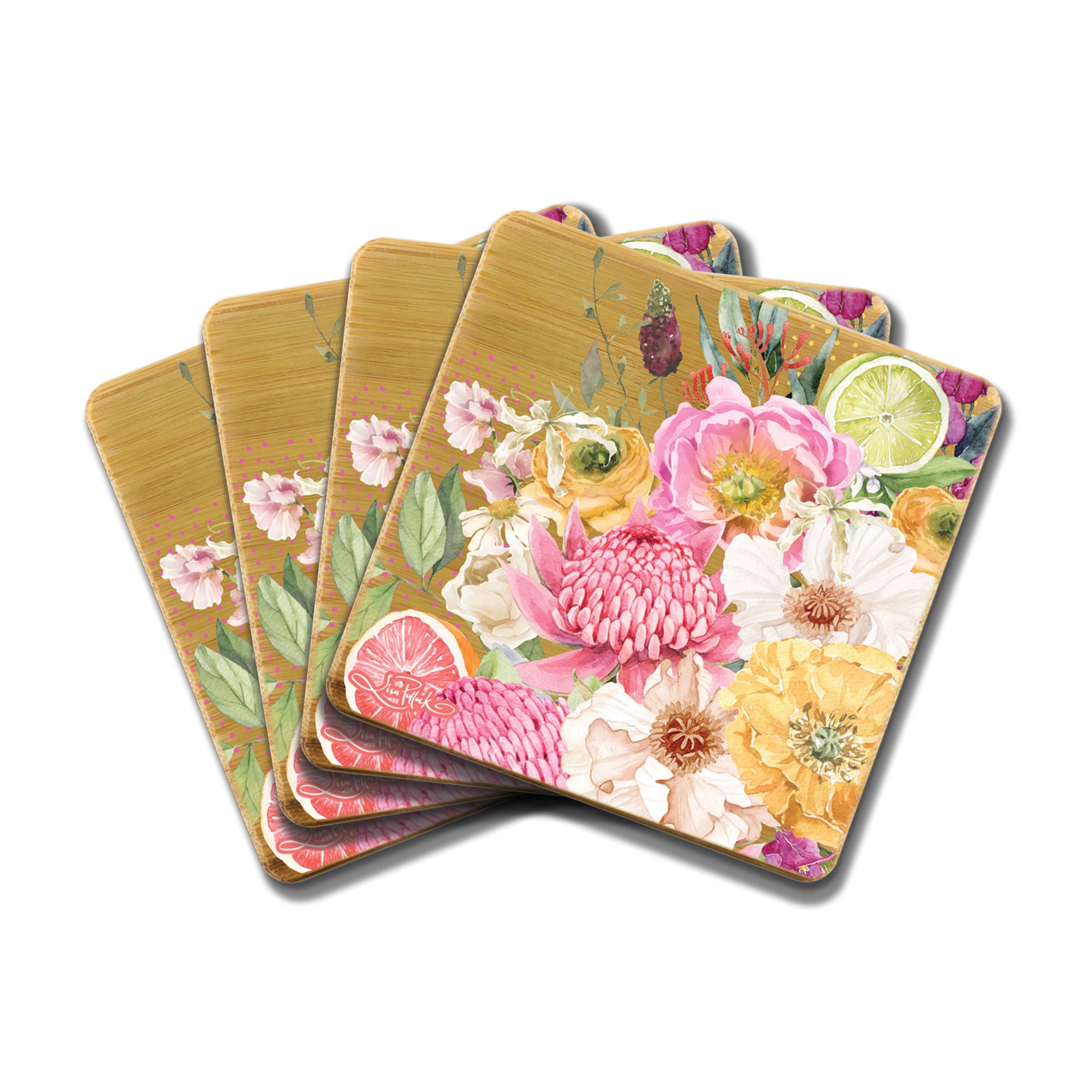 Bamboo Coasters set. 10cm each. Zesty Spring.