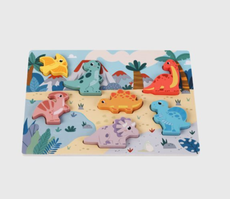 This wooden puzzle is a great activity for parents and children to play together, encouraging learning and coordination skills. Featuring all your favourite dinosaur friends. Made of wood with completely non-toxic, child-friendly paints and finishes.