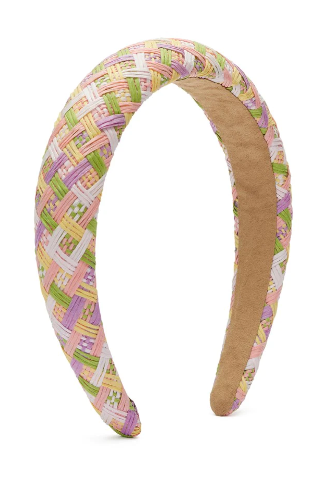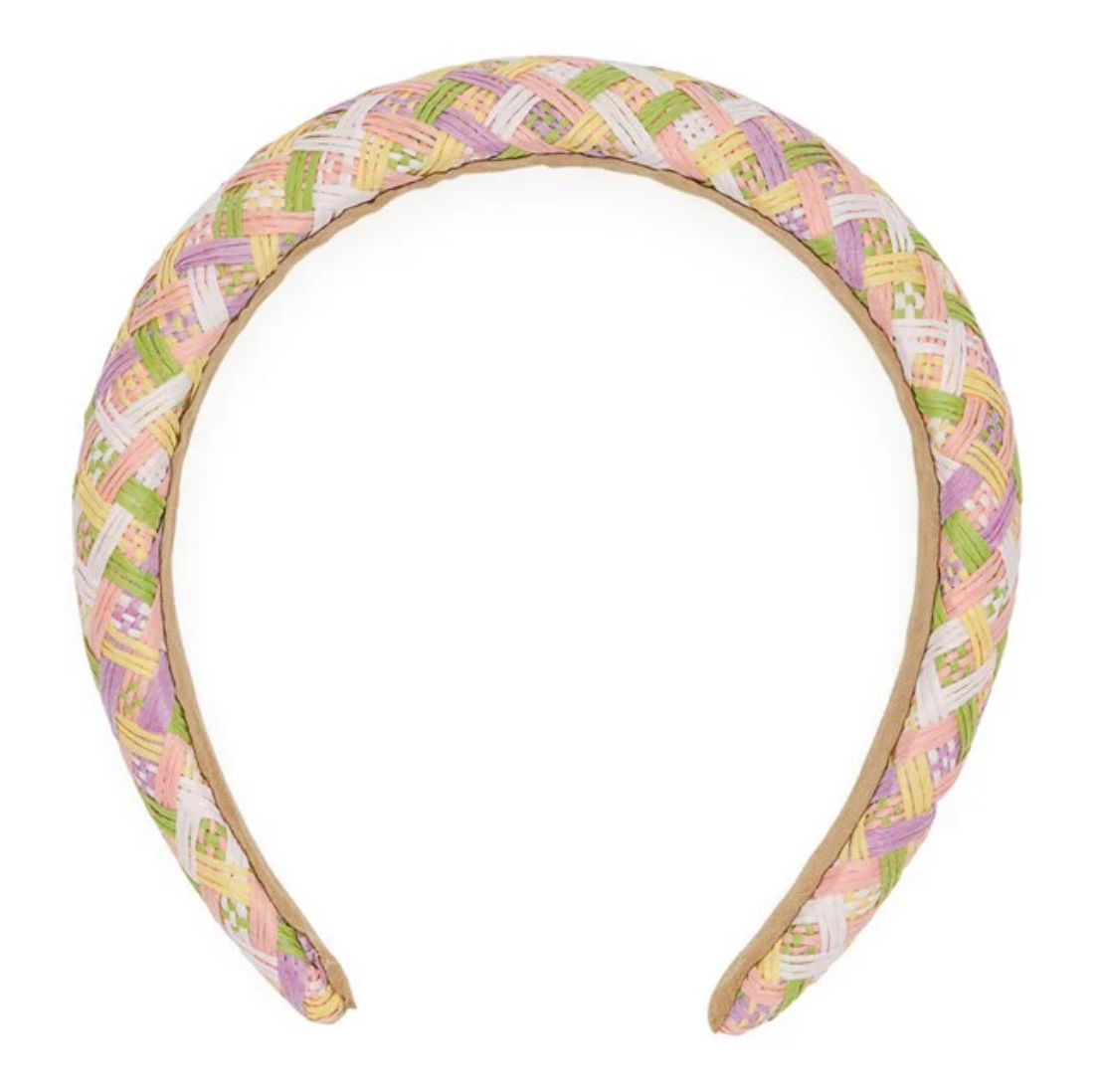 - Soft, padded headband with fabric criss cross pattern