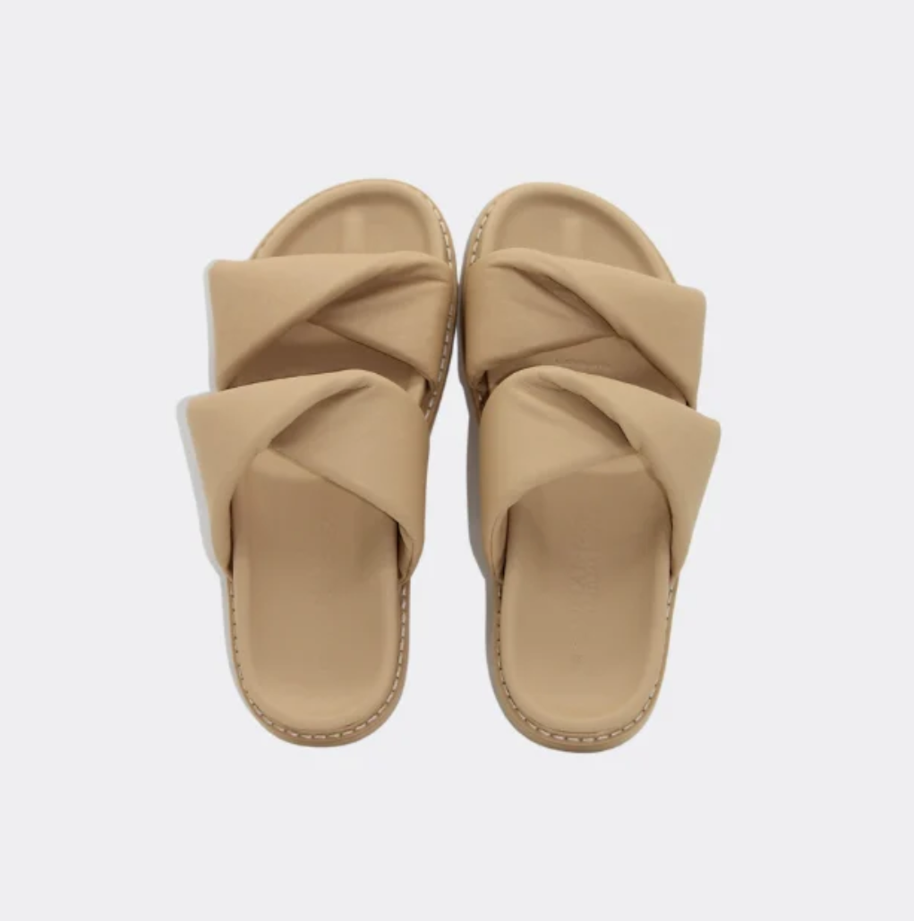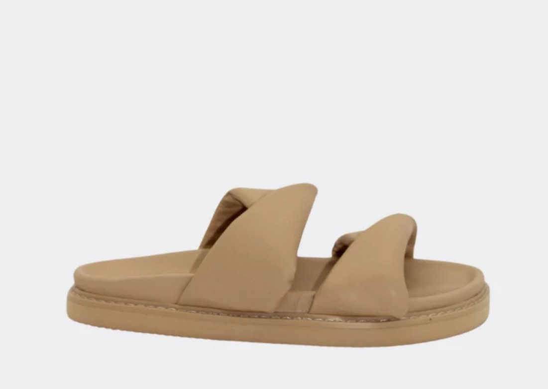 Padded leather twisted straps on a soft footbed