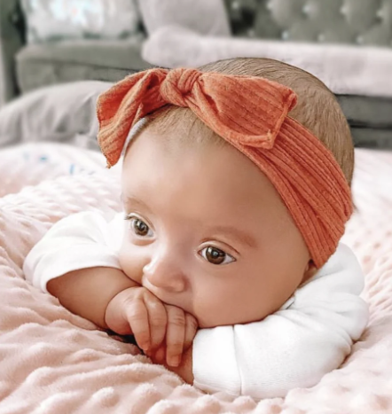 Girl, newborn, headband, cotton, headwrap, cheap, boho, rustic, vintage, ribbed, rust.
