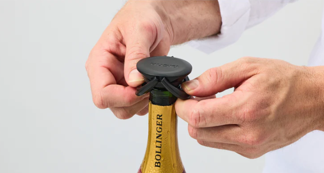 - BubbleLock™ Bottle Stopper. Removable stopper in base. Keeps wine bubbly longer.