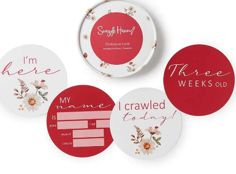 Capture your baby's milestone moments and document their 'firsts' in photographs to treasure for a lifetime with our Ladybug & Hibiscus Milestone Cards. This 2 in 1 pack contains 25 Reversible milestone cards that coordinate with a range of our products.