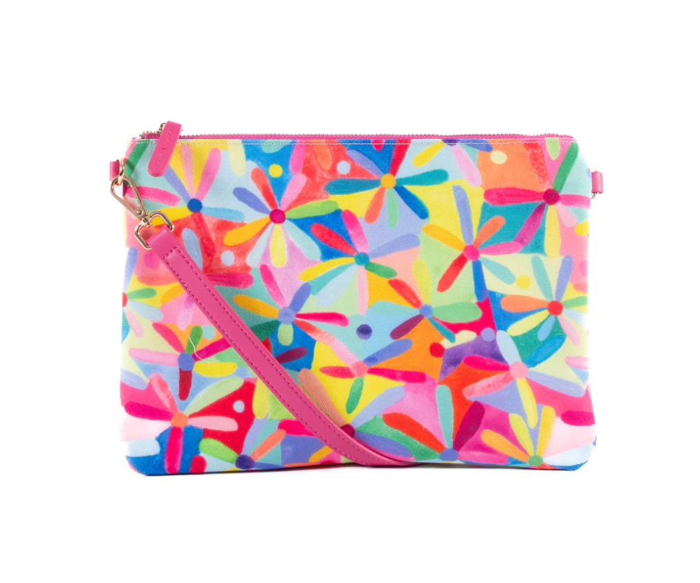 - External Features: 'Daisy' Printed Canvas, cross body strap & wristlet strap