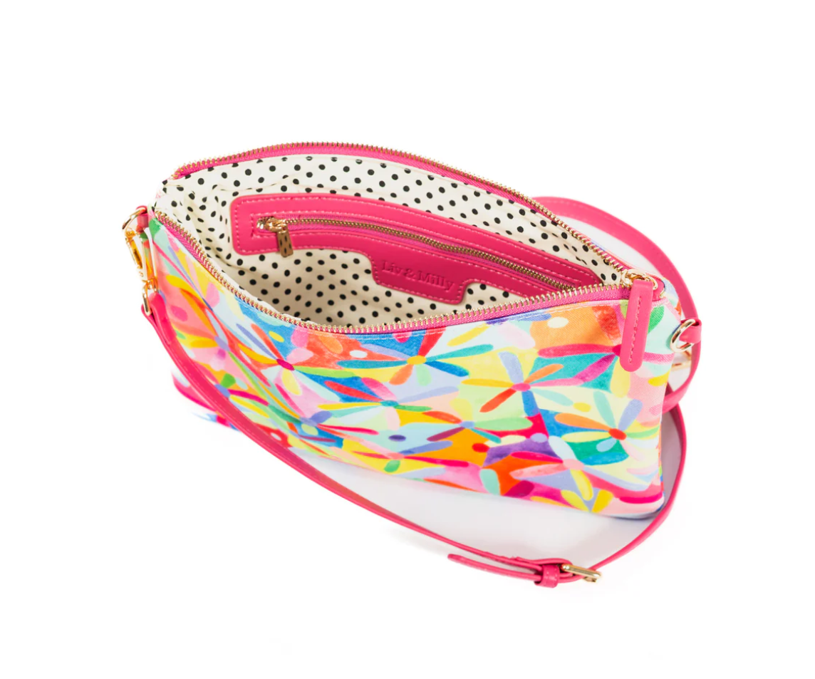 This is a cute & super fun cross body bag which also has the option to be used as a wristlet.