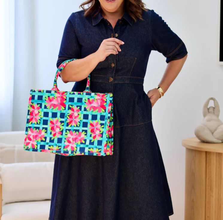 Book smart! Liv & Milly collaborates again with Lordy Dordie. Showcasing her "Garden Trellis" design with it's bold, vibrant colours that capture the energy & warmth of a floral garden. Our popular & much loved Book Bag is the ideal companion for carrying your laptop, files, lunchbox, and drink bottle—while also showcasing a fun piece of art.