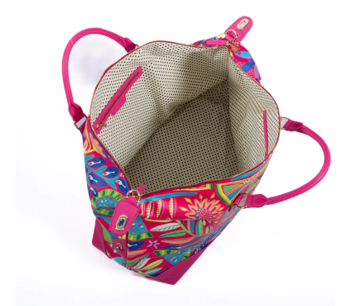 - External Features: PU leather handles & printed nylon
