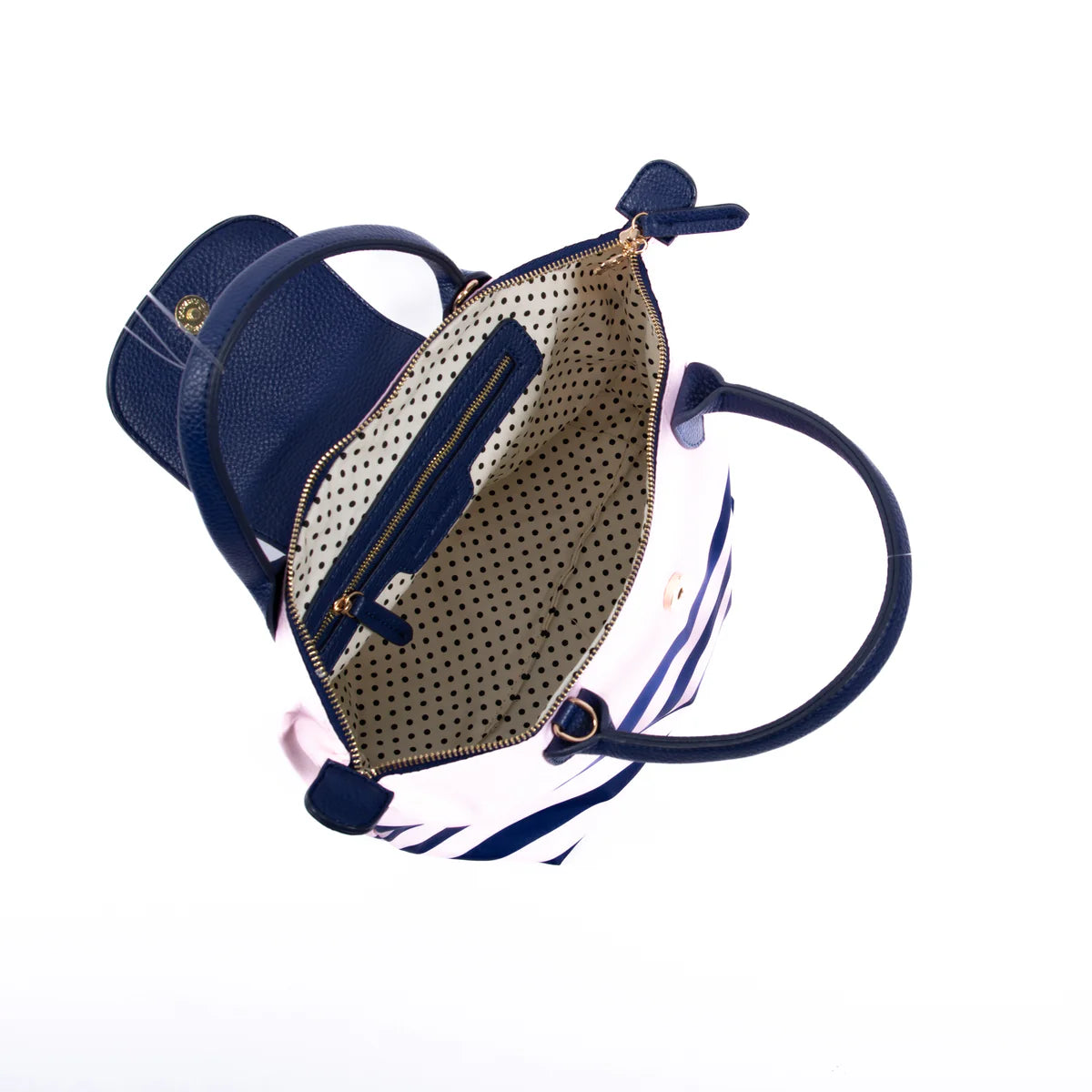 - Internal Lining: Cream with black spots linen