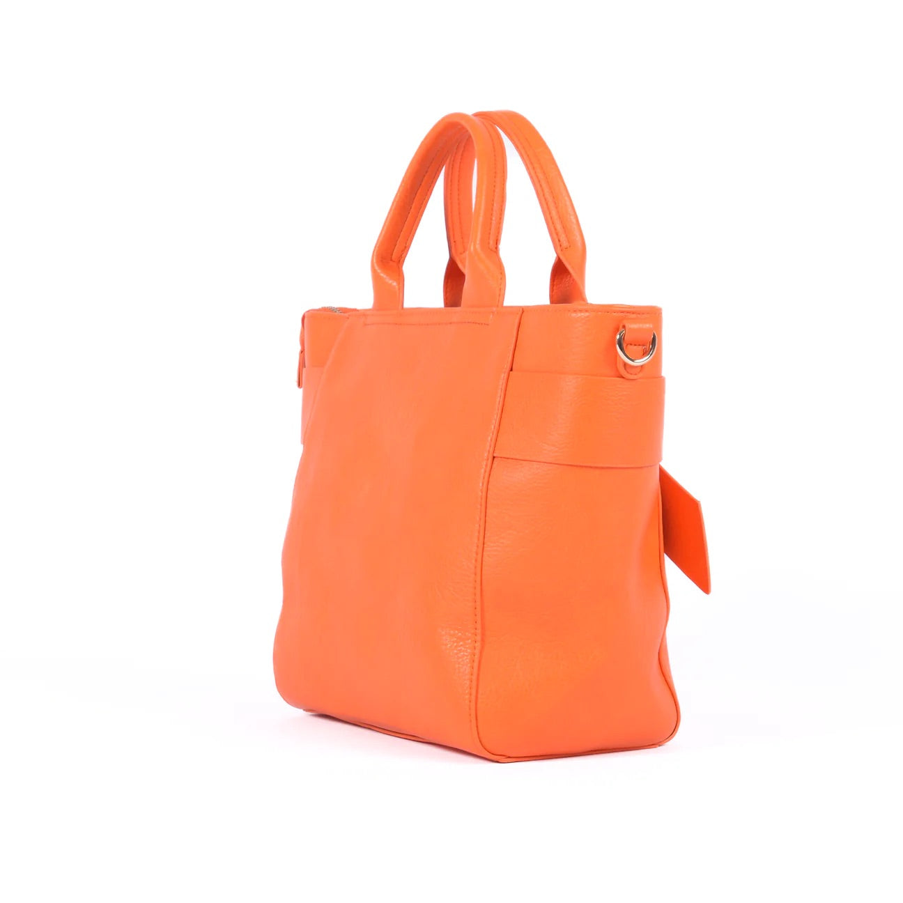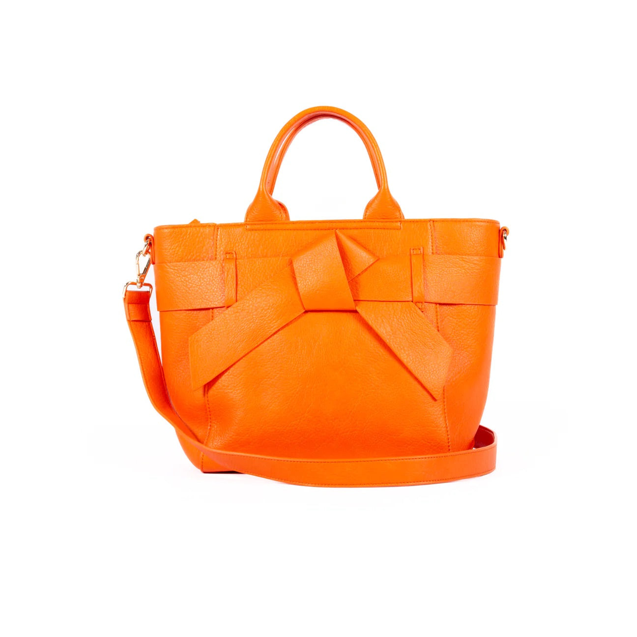 - External Features: Textured Vegan Leather with Orange Bow