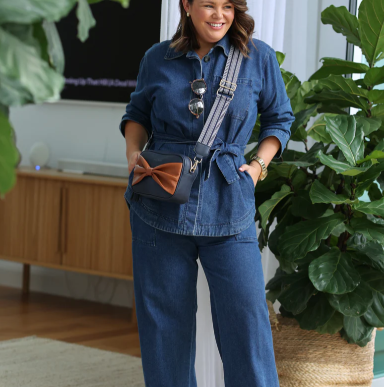 Love the SALLY? Enhance your everyday style by purchasing SALLY WITH A BOW! This new and improved crossbody bag is crafted from luxuriously soft vegan leather, and available in Navy, Pink and Tan. Designed for hands-free convenience, SALLY WITH A BOW features two adjustable straps – a patterned guitar strap and a matching strap. Make this bag your newest addition!