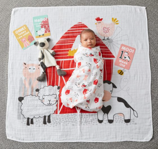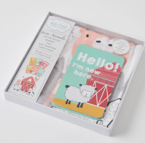 This 100% Cotton Muslin with 6 Milestone Cards is perfect for capturing the memories of a baby’s first milestones. Lay the blanket down in a safe space on the ground, and gently place the baby in the centre of the blanket print. Place one of the Milestone Cards next to the baby and then take a photo to capture the cute moment.