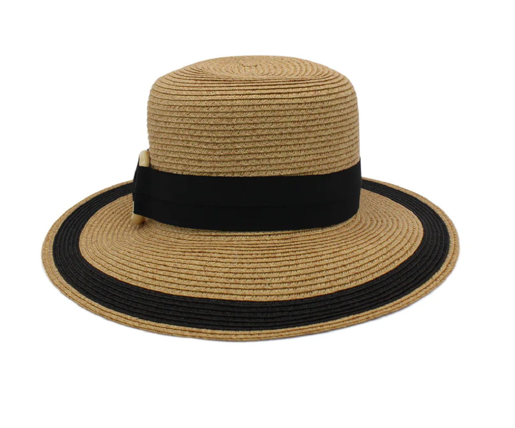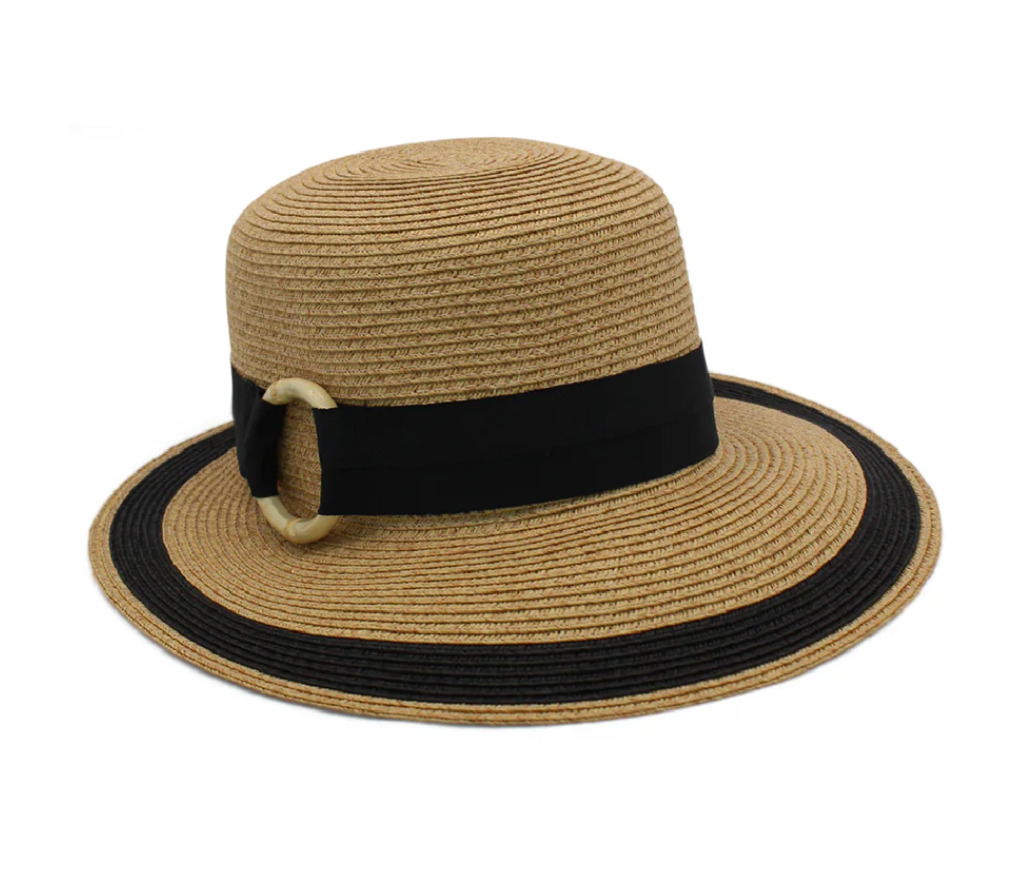 The Morgan & Taylor Brighton Cap sleek and minimalist with a wide brim and wide trim and gold buckle.