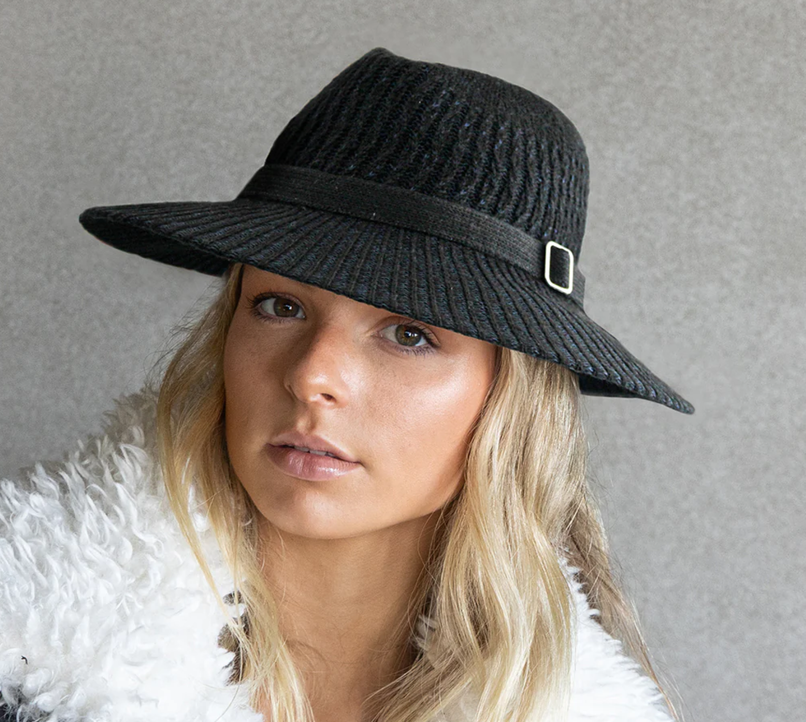 Complete your winter wardrobe with the Brandie Fedora. Knitted with chain weave in the crown and coordindated knitted belt. Fully lined for added warmth.