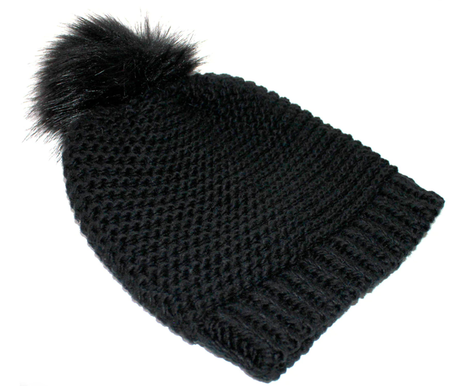 What wardrobe doesn't benefit from a cosy beanie. Iva Beanie in classic garter stitch with rib band and faux pom pom will keep you warm and on point this winter.
