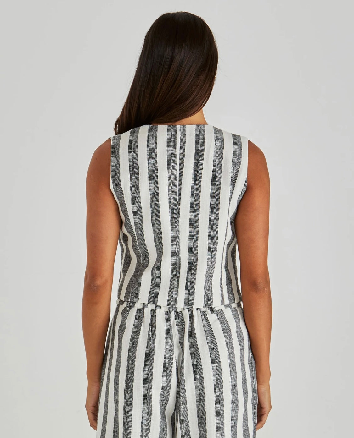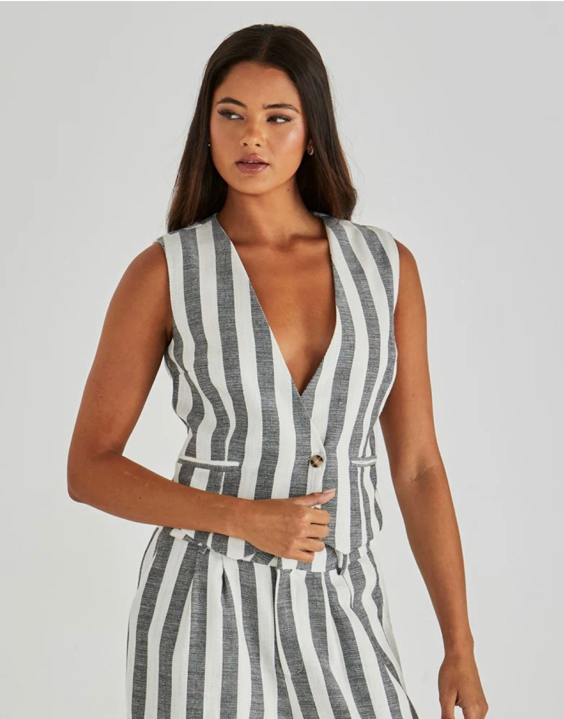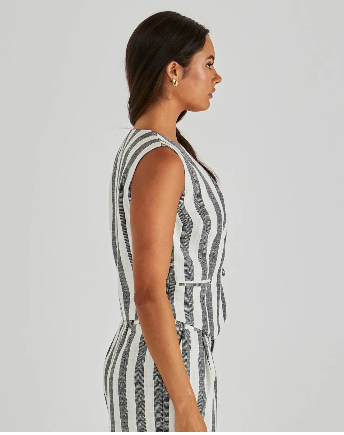 With a tailored shape and contrast buttons, the Nevada Vest brings vintage-inspired cool to your summer looks. Pair it with the matching skirt or jeans for a laid-back, elevated vibe. Fully lined and easy to wear, it's a chic layering piece.