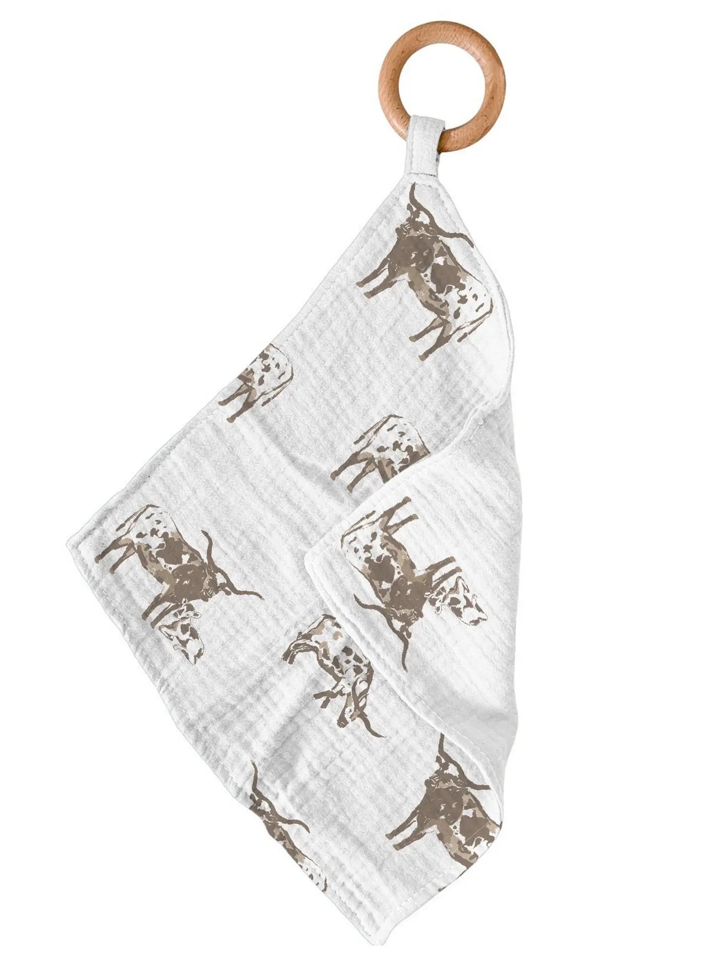 The Newcastle Teether is made from our popular 100% Bamboo mini blankies, with a removable beach wood ring for easy cleaning. Wood has natural antibacterial and antimicrobial properties, making wood a superior teether choice. Our teether and blankie combo provides little ones gum relief along with a soothing square to snuggle.