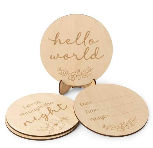 This wooden milestone disc pack contains 14 Reversible milestone cards made from 100% natural basswood timber with the floral design - perfect for matching across our prints. There is a different Floral design and message on each side of the disc.
