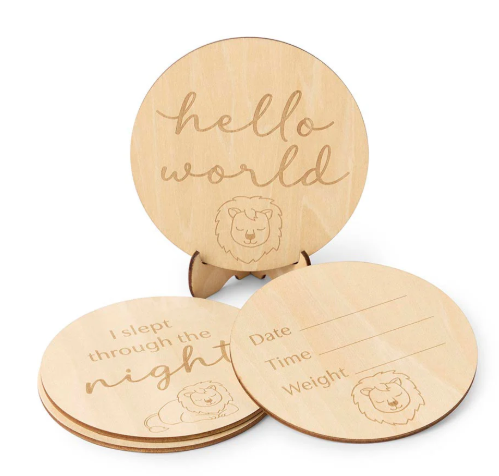 This wooden milestone disc pack contains 14 Reversible milestone cards made from 100% natural basswood timber with the busy bee design - perfect for matching across our prints. There is a different Lion design and message on each side of the disc.
