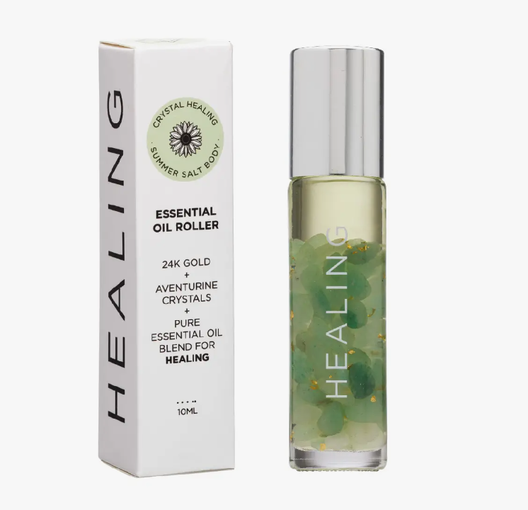 · Everything I need to heal is already within me · Aventurine infused oil with an Aventurine rollerball to promote health and wellbeing. This essential oil blend of Mandarin, Lavender, Marjoram & Myrrh is relaxing and soothing. Directions: Apply to the wrists, temples and behind the ears to increase mind, body and soul wellness. Please note: Our rollers are created using Essential Oils, they do not contain any fragrance oils and are not designed as perfume.