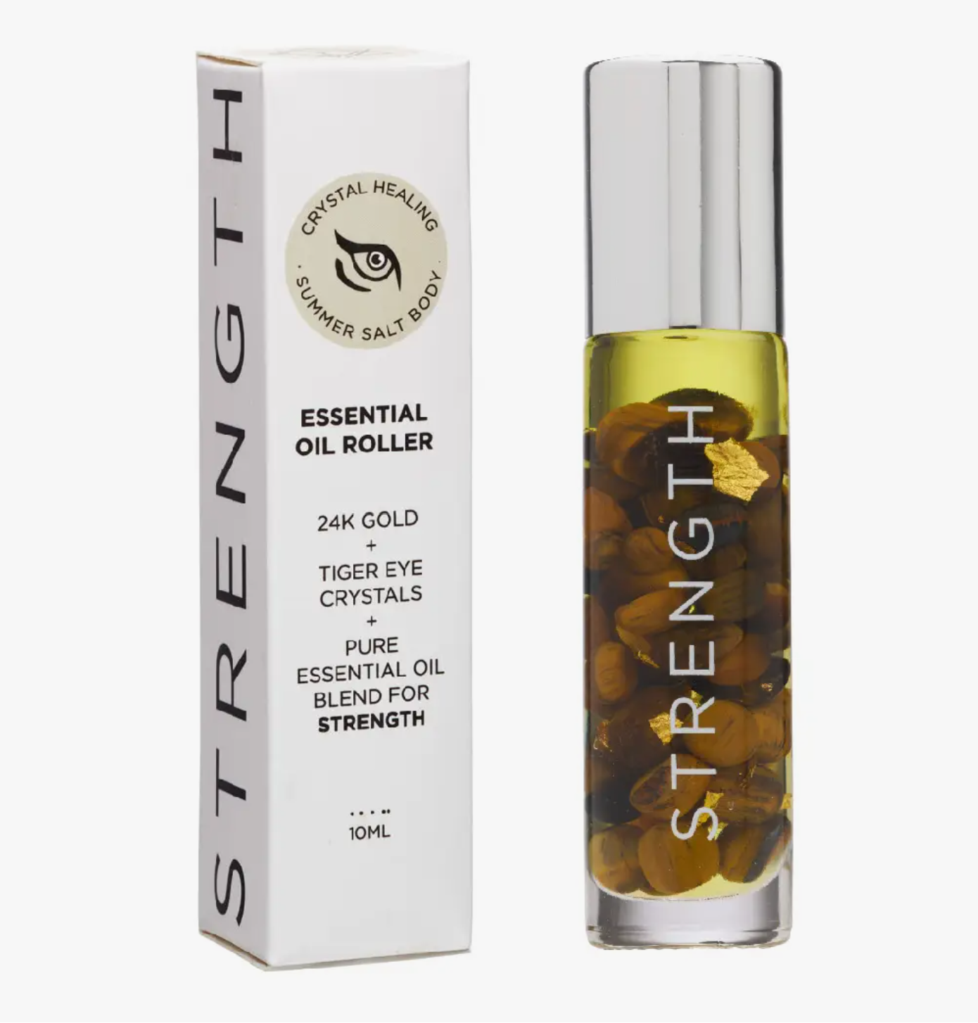 · I am strong · Tiger‘s Eye infused oil with a Tiger‘s Eye rollerball to promote strength, power, luck and inspiration. This stimulating blend of Orange, Cedarwood, Ylang Ylang & Neroli will encourage confidence and persistence. Directions: Apply to the wrists, temples and behind the ears to increase feelings of strength.