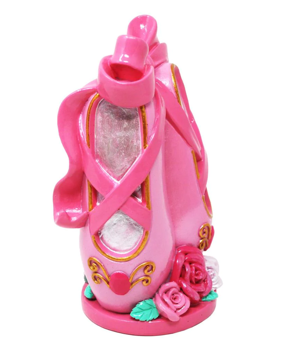 Little Ballet Dancer Money Box A delightful addition to any ballerina's bedroom. This beautiful money box is moulded from quality polyresin in the shape of vertical standing ballet shoes with a coin slot at the back to store her pocket money.